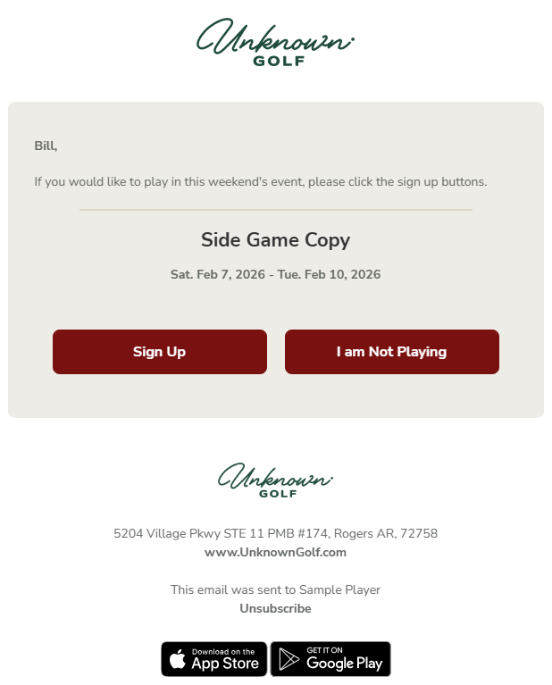 - Event Marked Not Paid – Players marked as Not Paid on the event’s registered players page