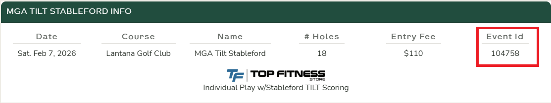 Once you open the Unknown Golf TV App, you will be prompted to enter an Event ID. You can find the Event ID on the event home page, located below the administration buttons.