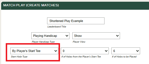 - Update to 'By Player's Start Tee' and select # of Holes to be Played.