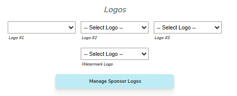 On the advanced event home, navigate to Print Center > Scorecards. Scrolling down to the Logos section, you can then apply up to three logos and one watermark.