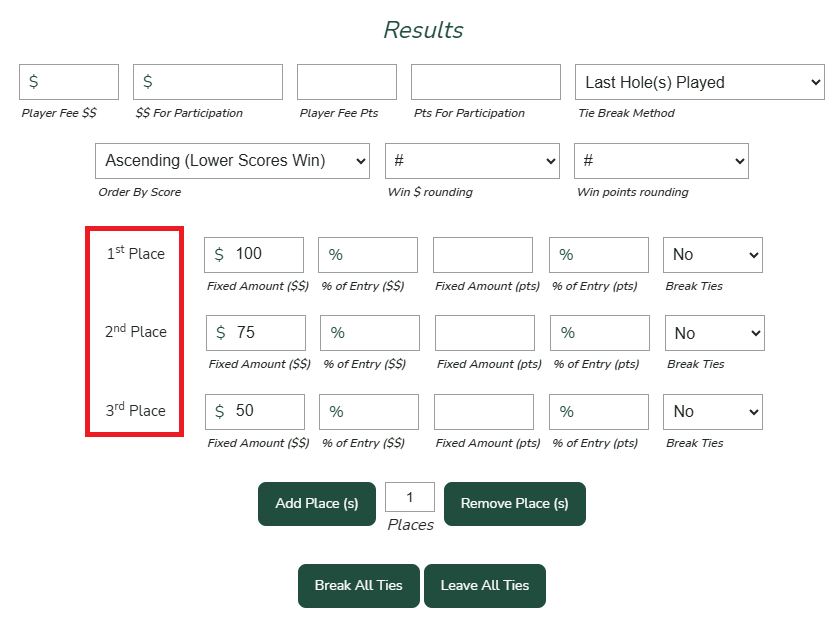 If your leaderboard awards winnings by place, make sure the appropriate number of places is configured.